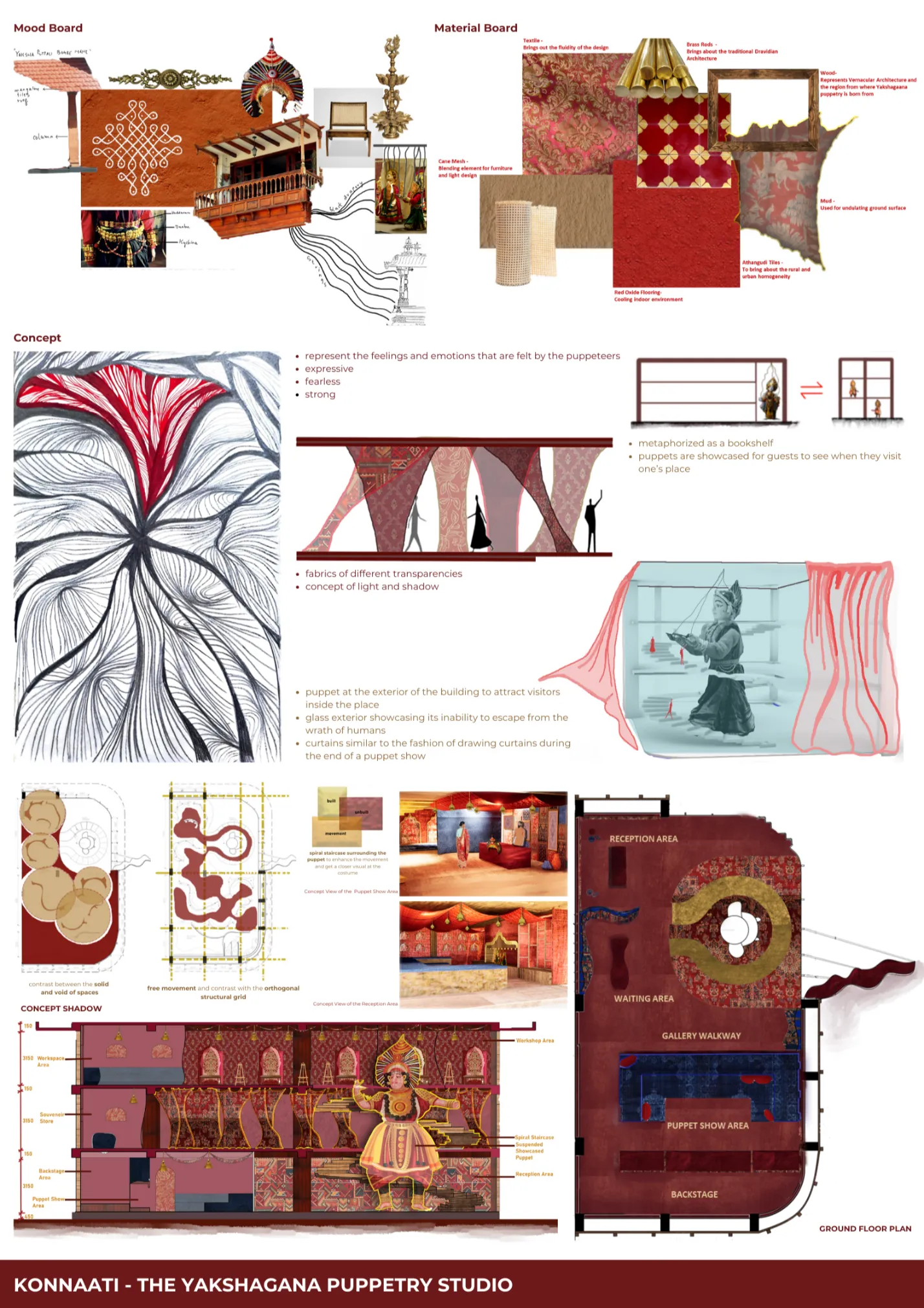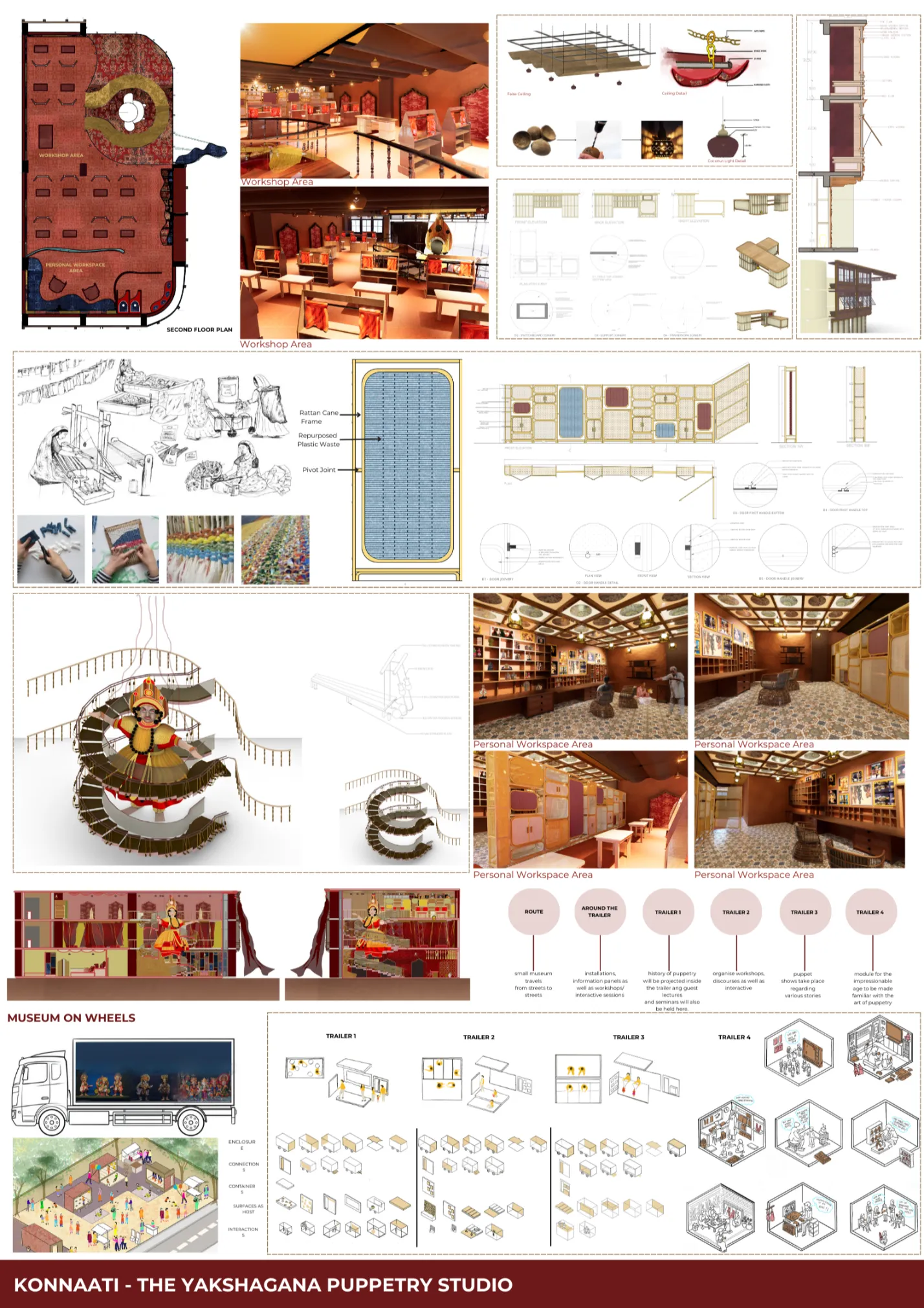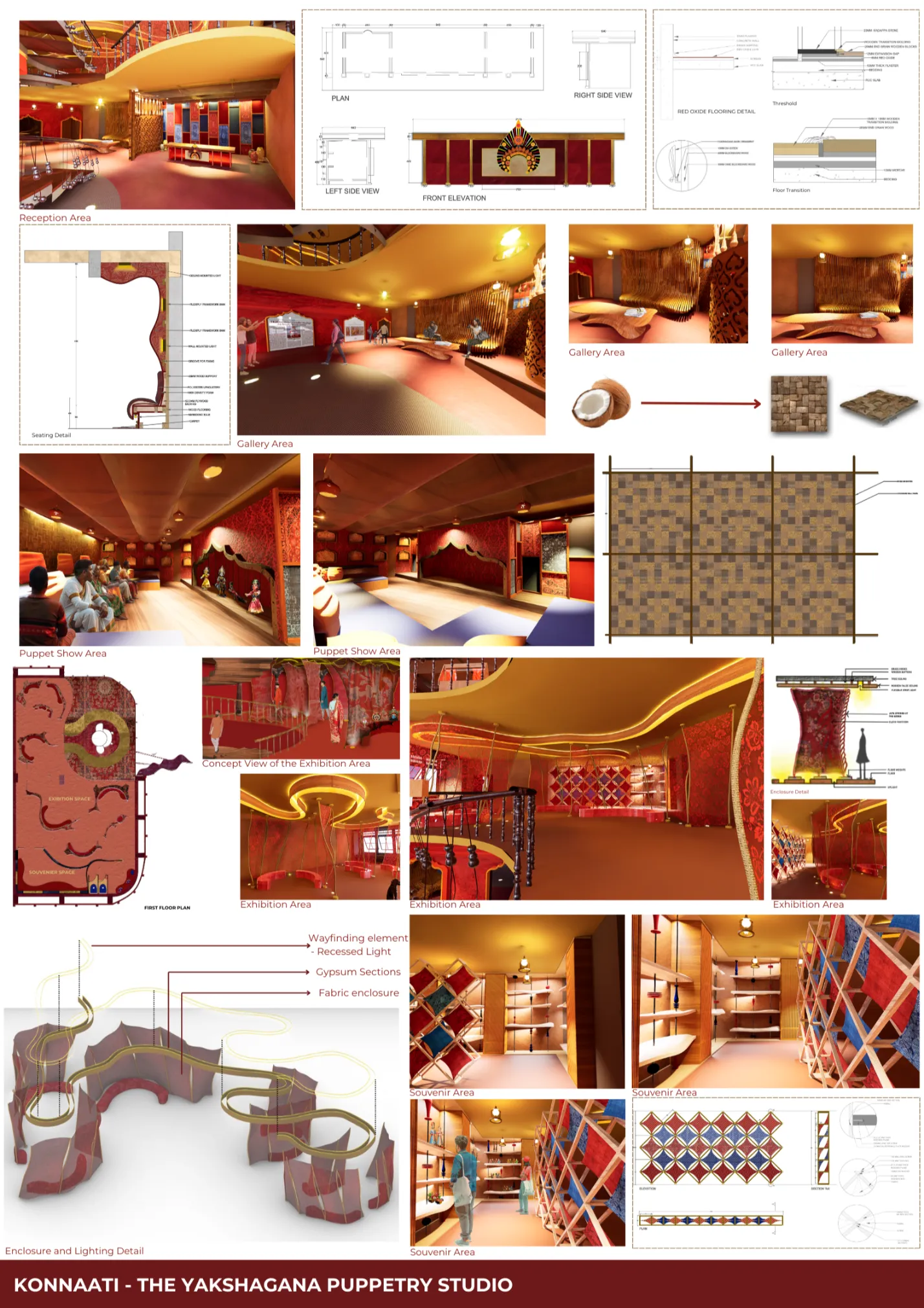 In essence, Konnaati is more than a building—it is a living, evolving tribute to cultural preservation, sustainable design, and community empowerment. By integrating waste lifecycle solutions, repurposed materials, and a performative spatial experience, the project aims to create a self-sustaining ecosystem that keeps Yakshagana puppetry alive for generations to come.
