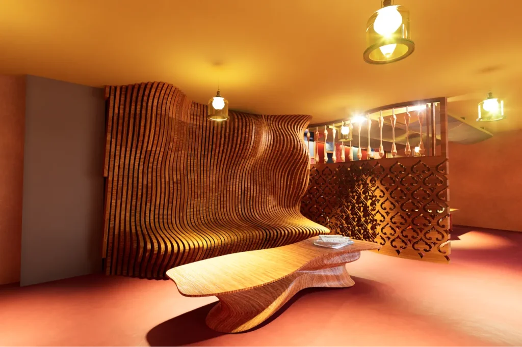 Passive strategies—green roofs, stack effect, evaporative cooling, and locally sourced materials—anchor the project in sustainability. Bricks salvaged from an old brick kiln on site carry material memory and reduce embodied energy. The khatiya, a familiar wooden bed woven with jute or cotton fiber, is adapted into partition walls that can transform into sleeping surfaces—rooting the architecture in local practice.