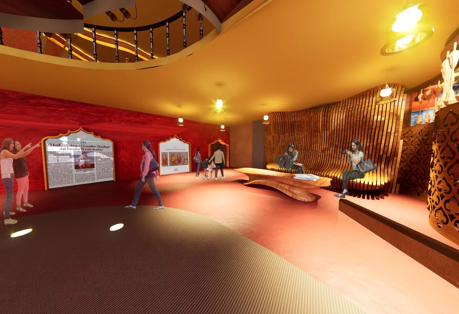 The name Konnaati is derived from “konne” (corners) and “nati” (actors/puppets) in Kannada, signifying the intimate street-corner performances of the past. The architectural and material language draws heavily from the Dravidian heritage, while embracing modern sustainability principles. The design metaphorically resembles a bookshelf—a container of stories—where puppets are displayed, narrating tales through both static and performative means.