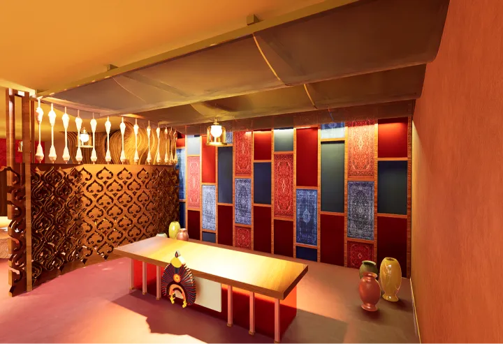 A museum formed of the remnants of the Harshad Mata temple is a part of the project. The remains of the temple, which are currently being housed inside the Chand Baori, will be preserved along with other relics that represent the residents and their culture. The socio- cultural hub references and draws inspiration from the exquisite craftsmanship found in poetry, bangle making, stone artefacts and the inherent beauty in the simplicity and straightforward elegance of village life. In this way, the project aims to take us back to our foundation, to the base of the simplistic nature of lives and for a moment to take us away from the chaos created by the onset of the digital age.