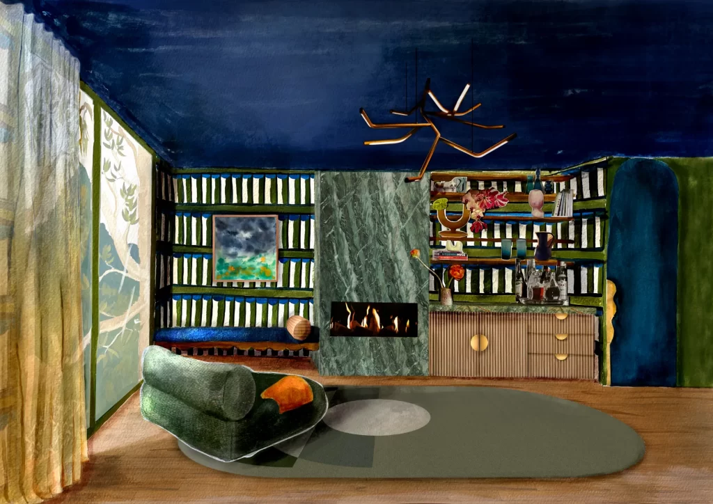 Hues of Mount Kunanyi, a Boutique Hotel in Tasmania, has a mission: to rekindle our bond with nature and combat the white wall epidemic prevalent in hotel culture. Taking inspiration directly from nature, this design features sensory elements alongside colour psychology to harness the power of nature. This interior is crafted to awaken our primal instincts, aiming to reconnect people back to Mother Nature. With the rapid growth of urbanisation, we’ve witnessed the mass building of skyscrapers and sprawling cities, alongside technological advances that are transforming our lives. This progress, while remarkable, has unwittingly distanced us from our most primal and profound resource: Mother Nature. Urbanisation has led to a proliferation of concrete jungles where green spaces are sparse and nature feels distant. The rise of technology has tethered us to screens, captivating our attention within virtual worlds while real forests, rivers, and mountains beckon outside our windows. We have everything at our fingertips. A wood fire? No problem, we’ve got a 24/7hr video on YouTube. Moreover, the frenetic pace of modern life leaves little room for leisurely walks in the forest or moments of quiet contemplation by the river. This loss of connection has impacted our well-being. We are natural beings, and our primal instincts tie us to nature. Numerous studies have concluded that forest bathing, the simple practice of being in a natural environment, observing nature, and breathing deeply, can help decrease stress and boost health and well-being. A person’s deminer can change instantly when being in nature: the leaves crunching underfoot, the birds singing, and the sun warming our bodies. Nature has powers that benefit us mentally and emotionally. Within the confines of our built environments and the continuation of population growth, we have the potential to bridge the gap between humanity and nature through interiors. When thoughtfully conceived and researched, interiors designed with nature, sustainability and unique design elements in mind, can evoke the essence of being within nature, enhancing our well-being. Hues of Mount Kunanyi Hotel draws inspiration from Mount Kunanyi, from colour, lighting, finishes and materials to create a sensory experience. Once inside, you’re welcomed by warmth, a crackling fireplace, air infused with eucalyptus and wood smoke aromas, ambient lighting and rich dark cocooning colours. Inspired by eucalyptus leaves' the colour palette has been carefully curated to bring nature inside, while subconsciously portraying calmness and relaxation. Blue was inspired by the oil haze seen from a distance that certain eucalypt trees expel from their leaves, applying this intense colour on the ceiling spatially manipulates the space. Rich green, inspired by the leaves, used on the walls creates the feeling of being secluded. These colours invoke a sense of security and refreshment, relaxation and tranquillity, and when combined, the essence of what nature can restore within us is achieved. These blues and greens are balanced and illuminated by the radiant glow of orange, inspired by the sandstone rock formations at sunset, which glow in variations of warm tones, showcasing the ever-changing beauty of nature. The design seamlessly integrates organic forms, such as the scalloped timber joinery and natural textures. Each material was carefully considered to emanate the mountain’s rugged formations juxtaposed with softness. Every corner invites touch, from the smooth, cool surfaces reminiscent of rocks to the plush fabrics that mimic the gentle sway of eucalyptus leaves in the breeze. Lighting plays an integral part in the design. Soft, warm lighting mimics the sun’s movements. The pendant suspended from the ceiling, like a tree branch, casts shadows across the ceiling. The painted walls, finished in Roman clay, mirror the imperfection of the landscape. When sunlight filters through the sheer ombre curtains, the imperfections highlighted in the plaster are reminiscent of the dappled light cast by leaves. Furthermore, integrating natural light into the interior maximising access to daylight and minimising artificial lighting, blurs the boundaries between indoors and outdoors. Sustainability and localism are not just guiding principles, but the very essence of this design ethos. At the heart, the vision is an estimated 15 meticulously crafted boutique apartments, each embodying principles of passive house design. This hotel aspires to lead the charge in reducing the construction footprint on the environment and revitalising existing urban areas. Creating a sanctuary of luxury while cultivating environmental stewardship. Our disconnect from nature is a pressing challenge of our time, but it’s not insurmountable. With thoughtful interior design that celebrates and integrates natural elements, especially through colour and sensory materials, we can bridge our divide with nature and increase well-being. Hues of Mount Kunanyi celebrates the unique environmental features of its location, standing in stark contrast to the typical white-walled hotel room. By drawing inspiration from nature and incorporating elements that benefit our well-being we can ultimately change the landscape of design and better lives.